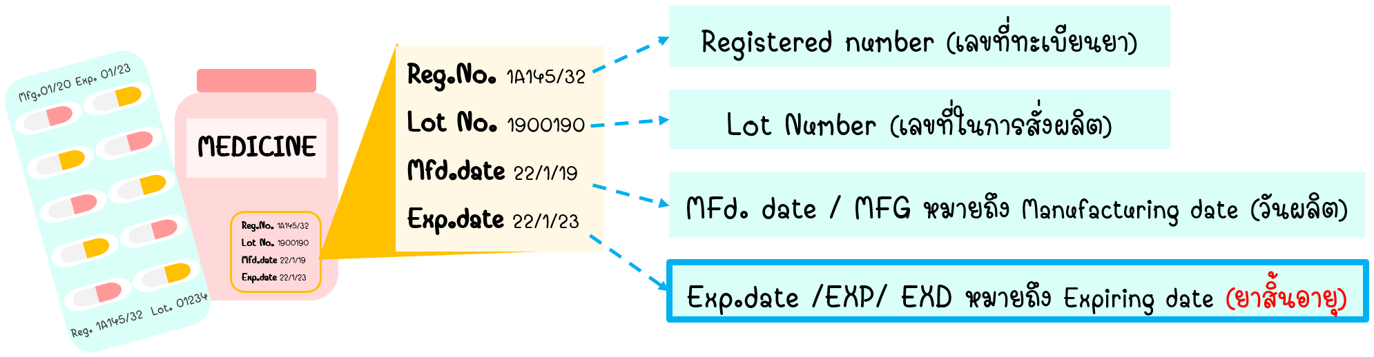 ดังนั้นหากเหลือยาแบ่งบรรจุเก็บไว้ที่บ้าน ไม่รู้ว่าจะหมดอายุเมื่อไหร่ ก็อาจพิจารณาจากวันที่บนฉลากยา