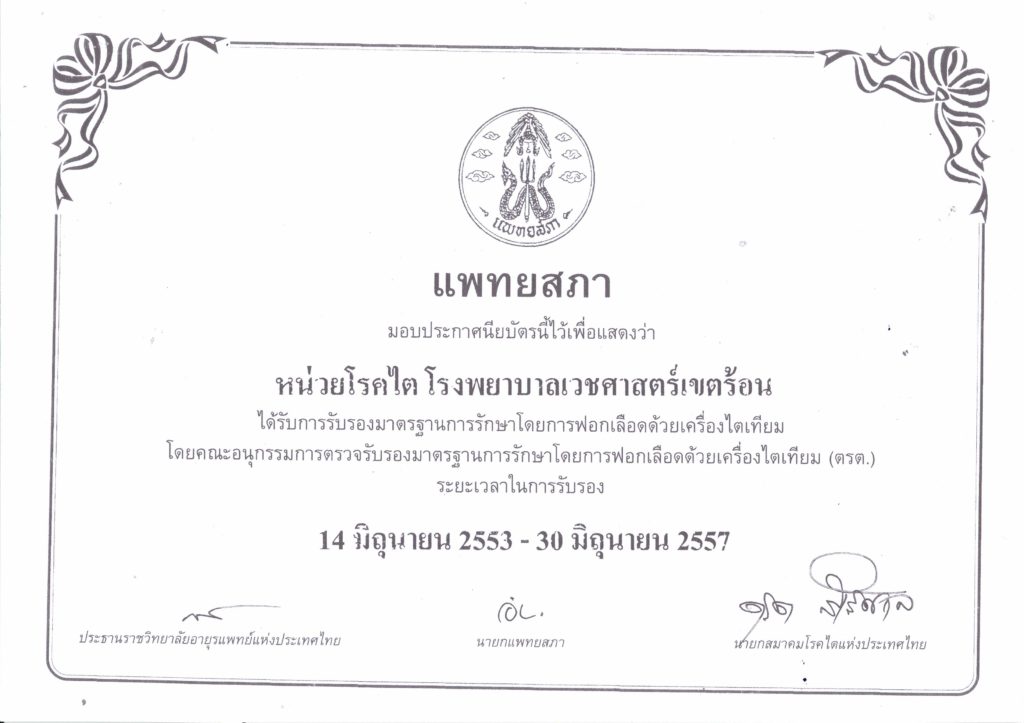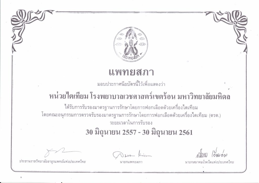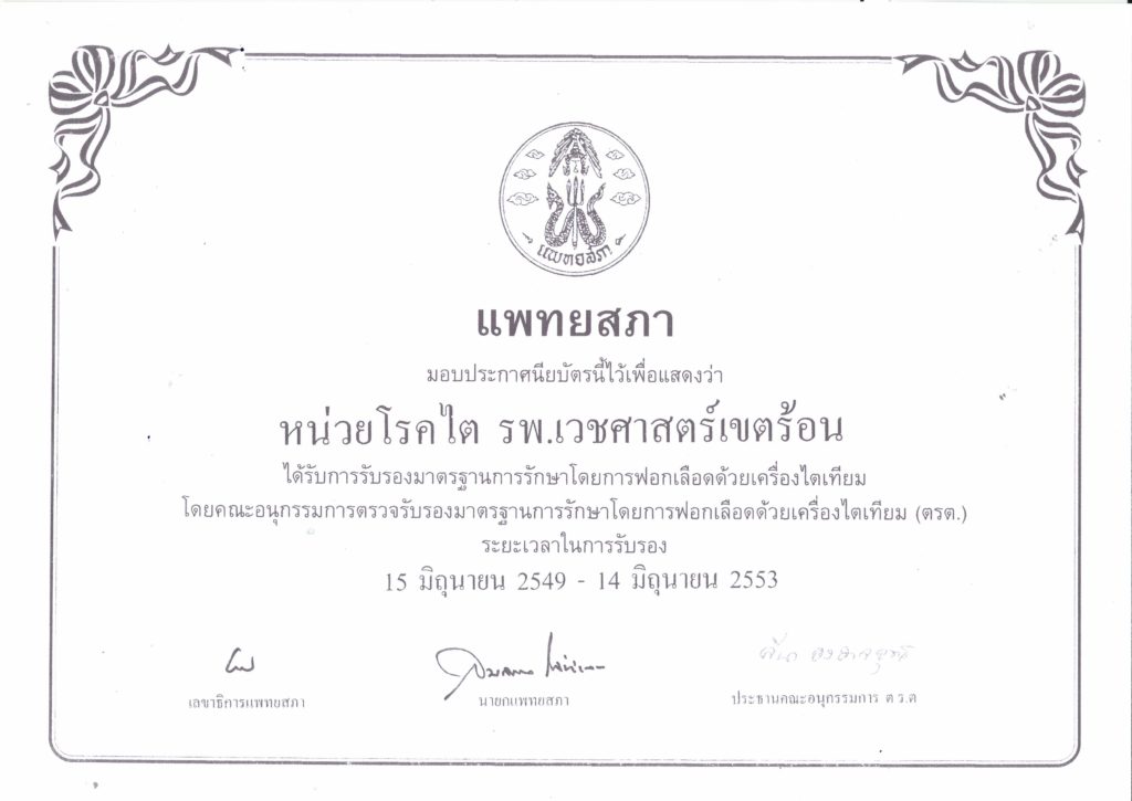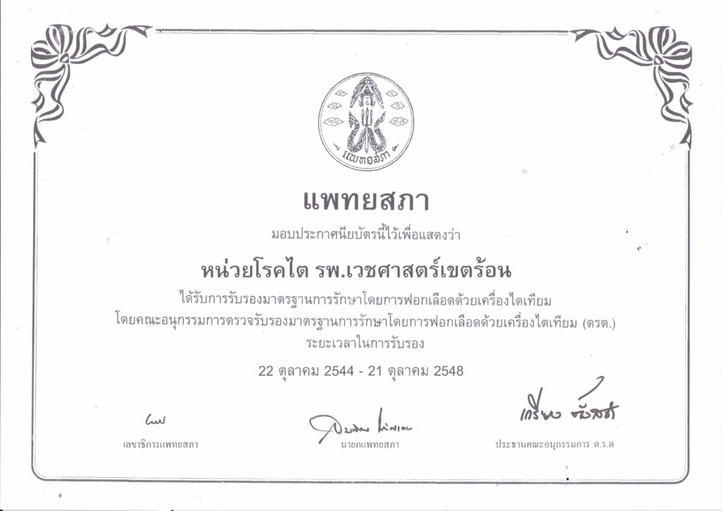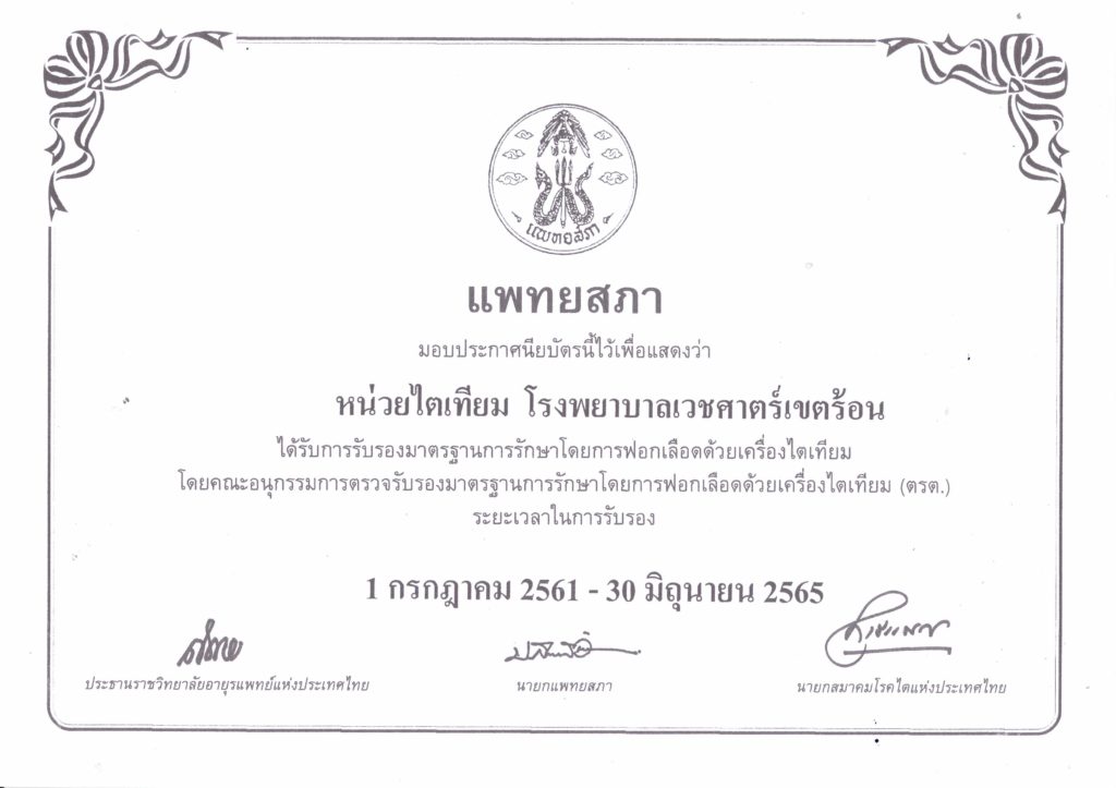 Timeline การรับรองคุณภาพมาตรฐานการรักษาโดยการฟอกเลือดด้วยเครื่องไตเทียม