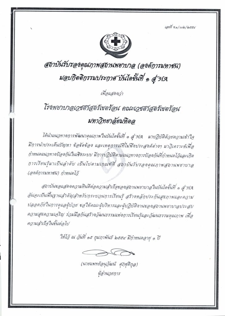 สถาบันรับรองคุณภาพสถานพยาบาล (องค์การมหาชน) หรือ สรพ. มีบทบาทในการยกระดับมาตรฐานและคุณภาพการให้บริการของสถานพยาบาลอย่างต่อเนื่อง ดังนั้น เพื่อให้สถาบันแห่งนี้มีสถานะที่เป็นที่น่าเชื่อถือของสังคมและเป็นองค์กรที่มีความมั่นคงของการดำเนินงานในระยะยาว จึงได้จัดตั้งสถาบันรับรองคุณภาพสถานพยาบาล (องค์การมหาชน) ขึ้น โดยออกเป็นพระราชกฤษฎีกาจัดตั้งสถาบันรับรองคุณภาพสถานพยาบาล (องค์การมหาชน) พ.ศ. 2552 ตั้งแต่วันที่ 22 มิถุนายน 2552