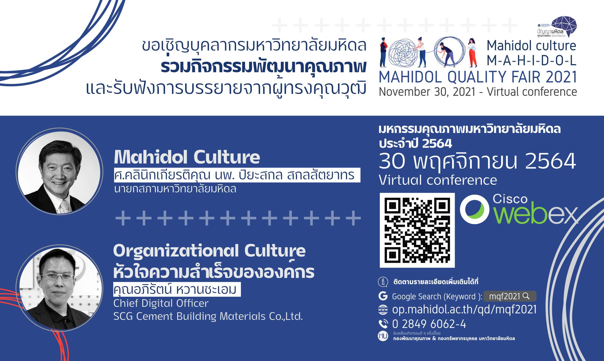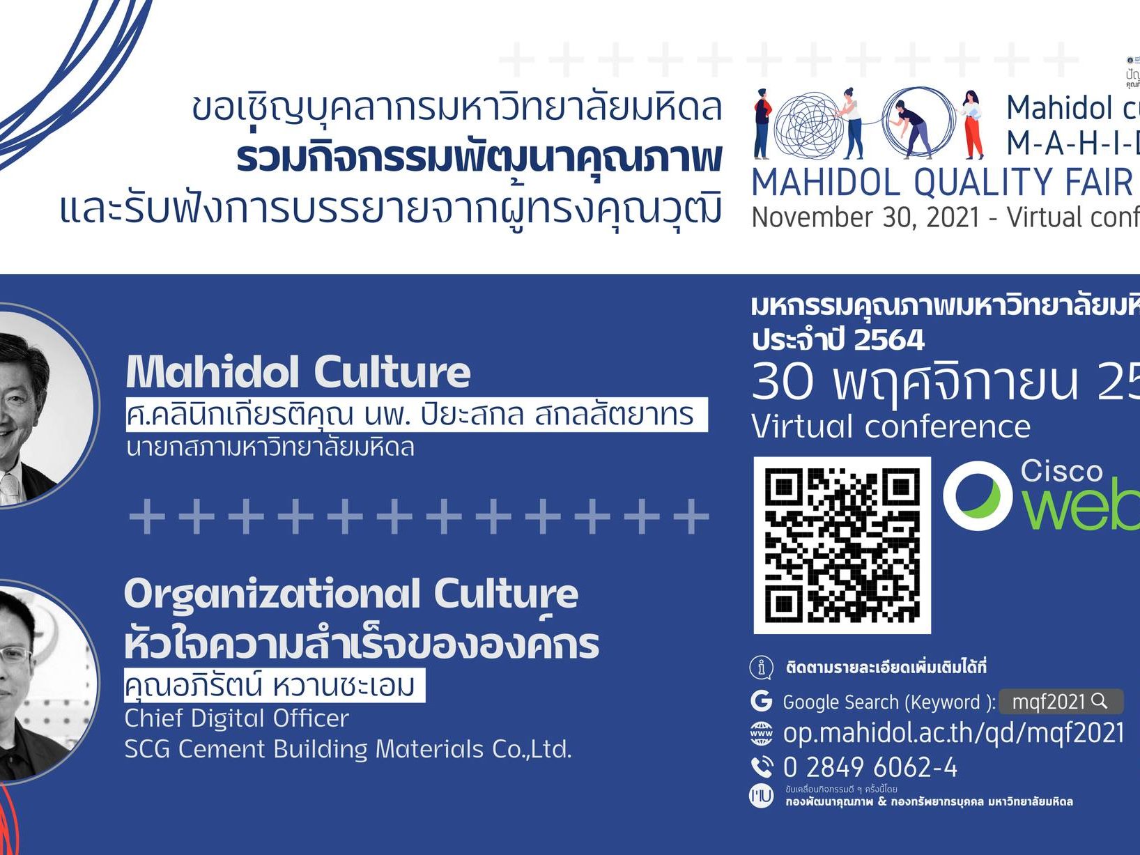 - กำหนดการงาน Mahidol Quality Fair ปี 2564 (กิจกรรมรูปแบบออนไลน์) คลิก
