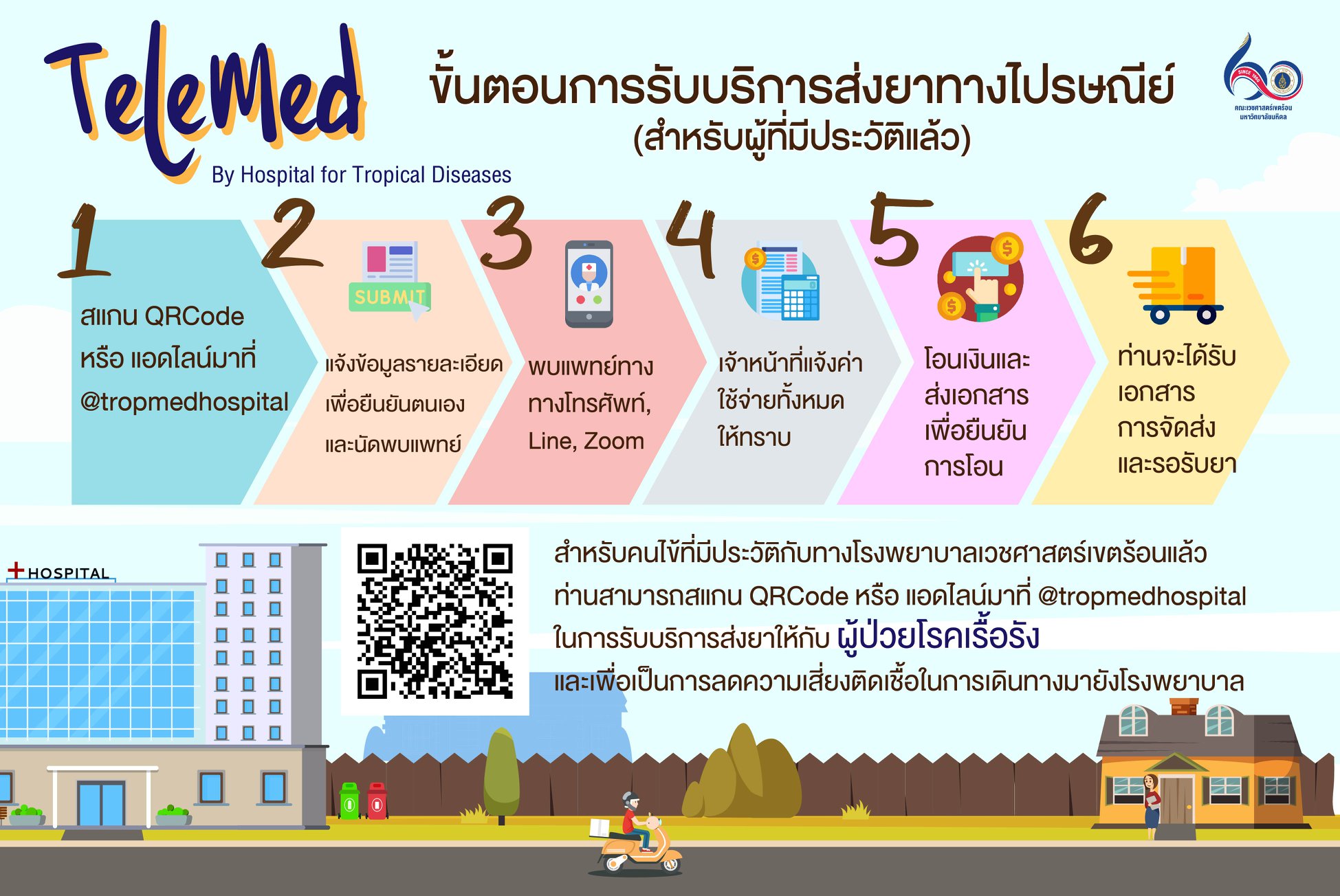 – สำหรับผู้ป่วยใหม่ สามารถลงทะเบียนออนไลน์ ได้ที่ website : www.tropmedhospital.com หรือติดต่อทำบัตรใหม่ได้ที่เคาเตอร์เวชระเบียน ชั้น 1 อาคารราชนครินทร์
