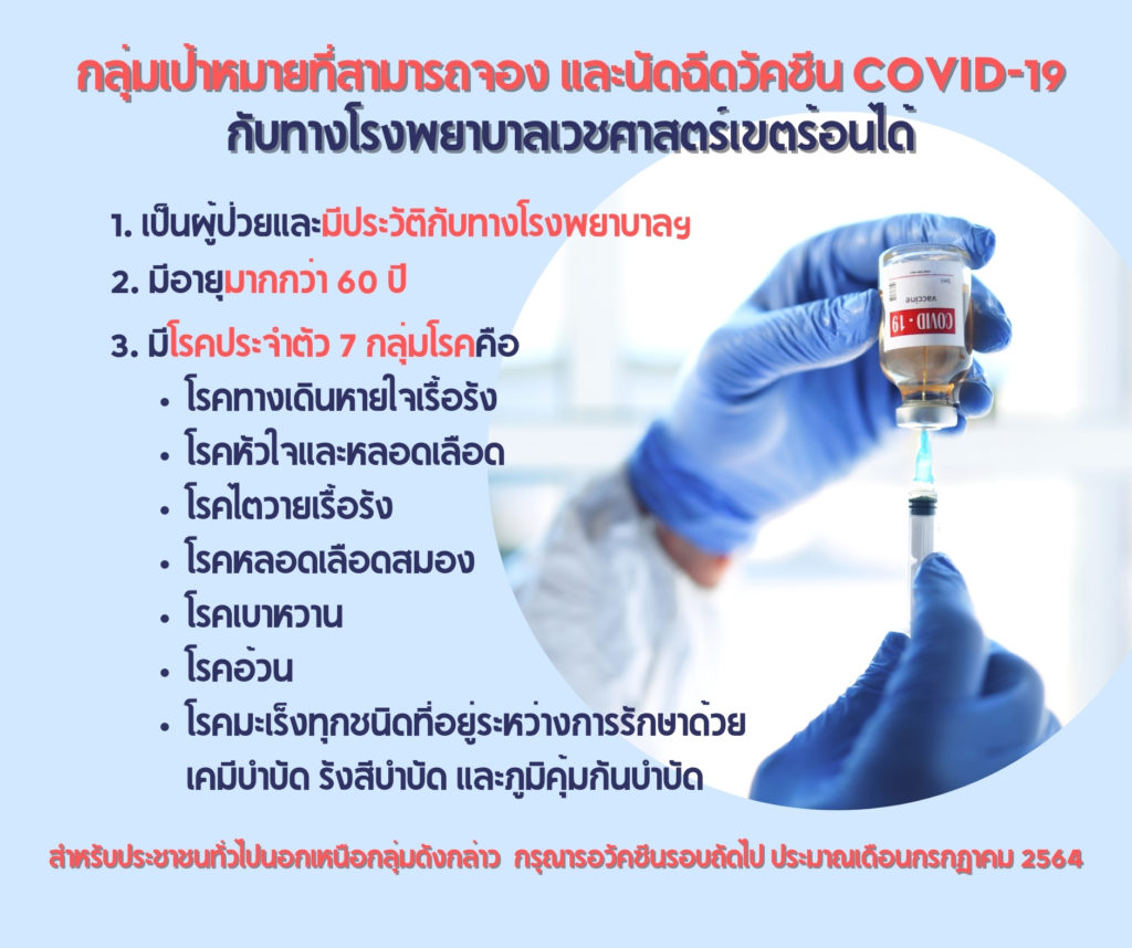 กลุ่มเป้าหมายที่สามารถจอง และนัดฉีดวัคซีน COVID-19 กับทางโรงพยาบาลเวชศาสตร์เขตร้อนได้