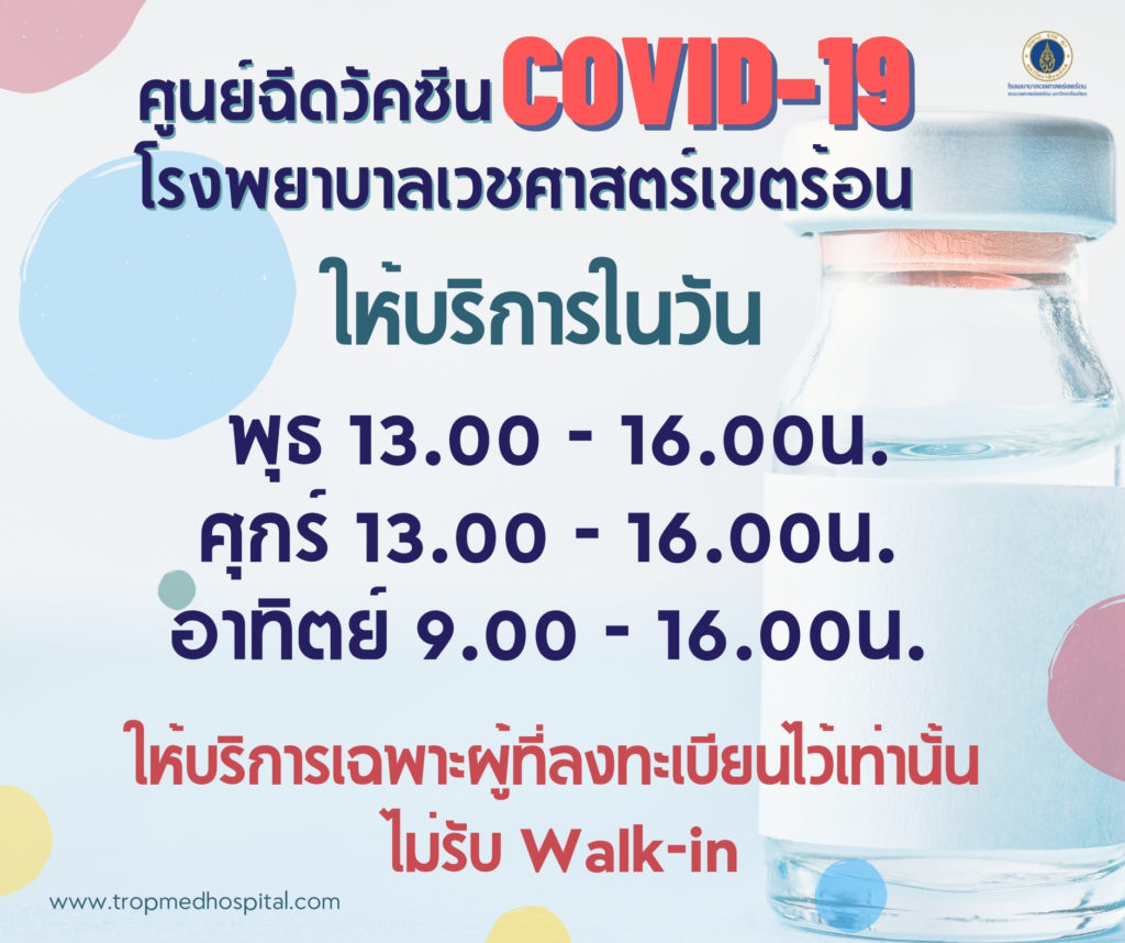 วัน/เวลาให้บริการ ศูนย์ฉีดวัคซีน COVID-19 โรงพยาบาลเวชศาสตร์เขตร้อน