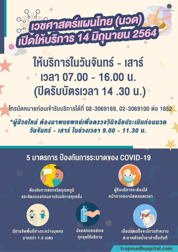 เวชศาสตร์แผนไทย(นวด) เปิดให้บริการ 14 มิถุนายน 2564